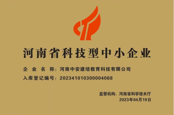近日,河南省科學技術廳發布關于“河南省2023年第三批入庫科技型中小企業名單公告”。通過審核、公示等環節,河南中安建培教育科技有限公司(簡稱“河南中安建培”)獲評“河南省科技型中小企業”稱號...
